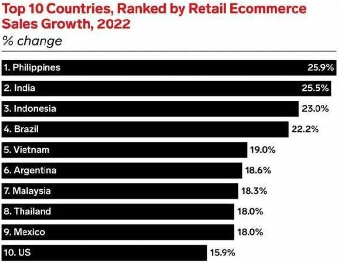 02 菲律宾数字产业持续高速增长,吸引国内互联网巨头布局 在电商市场增长最快的前 10 个国家里,菲律宾以 25.9%的增长率排在首位。近几年,菲 律宾电商行业不断发展,对我国跨境企业来说,无疑是一个新的机遇。作为全球社交媒体之 都,菲律宾人每天花在社交媒体上的时间超过 4 个小时,是东南亚国家里最长的。据 Nox 聚 星数据,菲律宾的互联网普及率为 67.0%,互联网用户数量高达 7391 万。