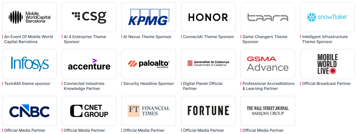 2026 年展会核心参考数据:超过 2900 家参展企业,其中超 350 家中国企业,超 1000 家初创企业和参展商、近 380 位演讲者、超 900 位投资者; l 展会现场来自 205 个国家和地区的 109,000 余名专业观众,其中 71% 的专业观众为企业高管和企业决策者; l 网络访问:250 万次访问,超 84 万次自然搜索访问; l 社交媒体:超 284 万次曝光,58.7 万+次视频观看,新增 2.2 万名关注者; l 付费社交:超 7800 万次活动曝光,53.7 万+次活动点击,69%的领英广告触达高管; l MWC APP:发送超 58.5 万条社交消息 |